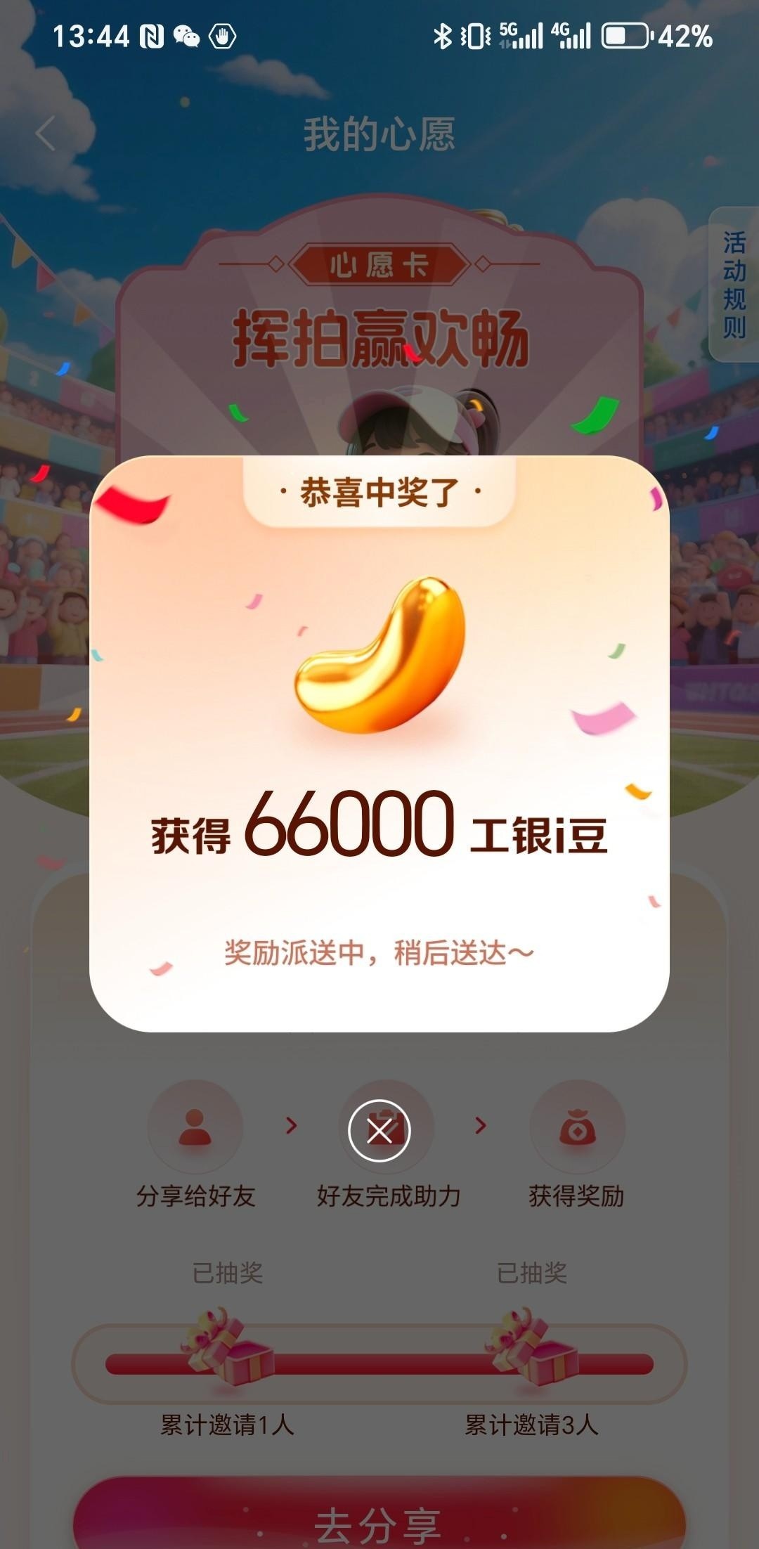 然后我图里那个66000豆是需要三个人助力的,不是必中。但是有低保5000豆。最高66000。也就是60块。