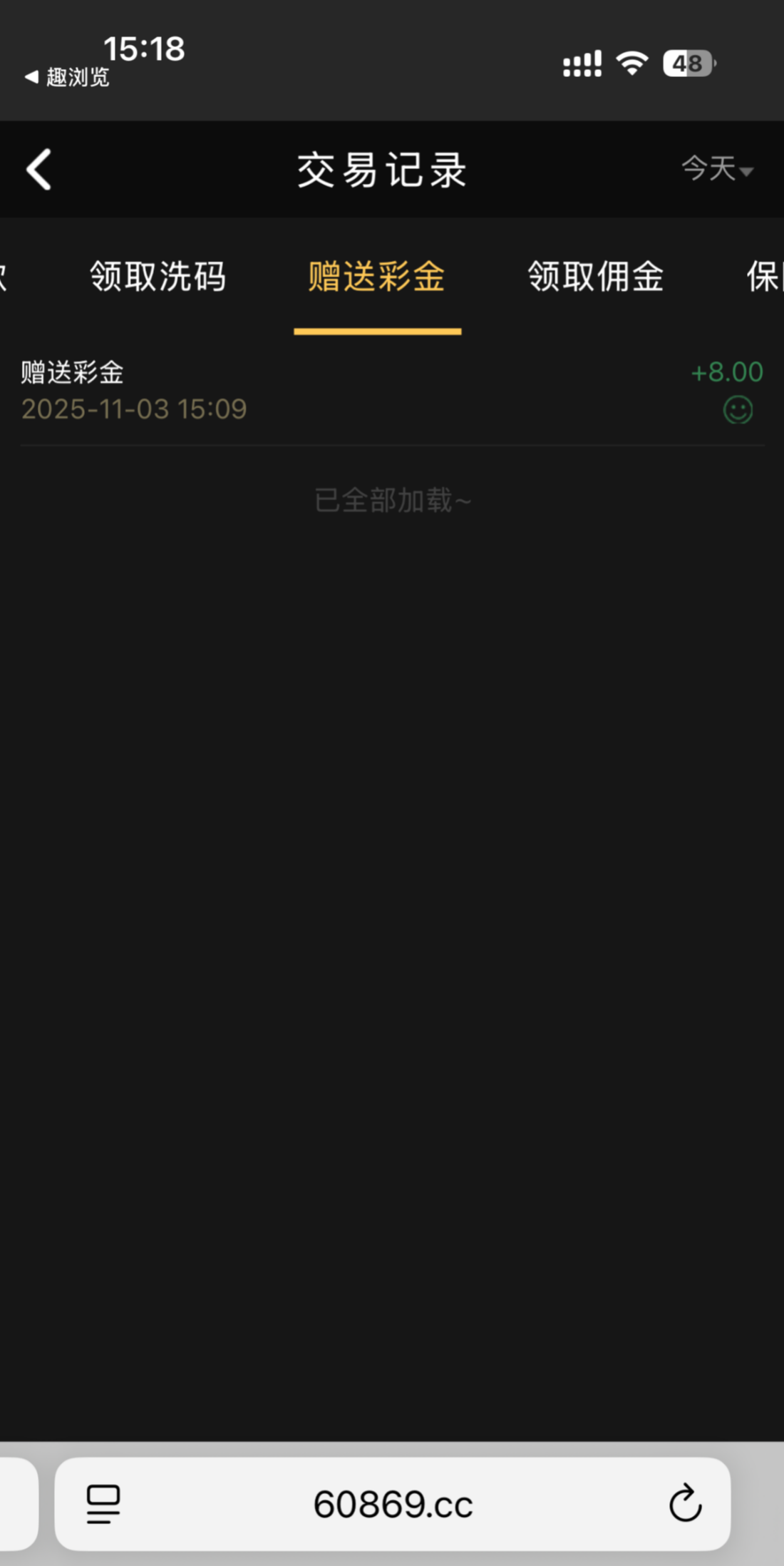 60869.cc 连送三天,只给了8块。在线客服申请