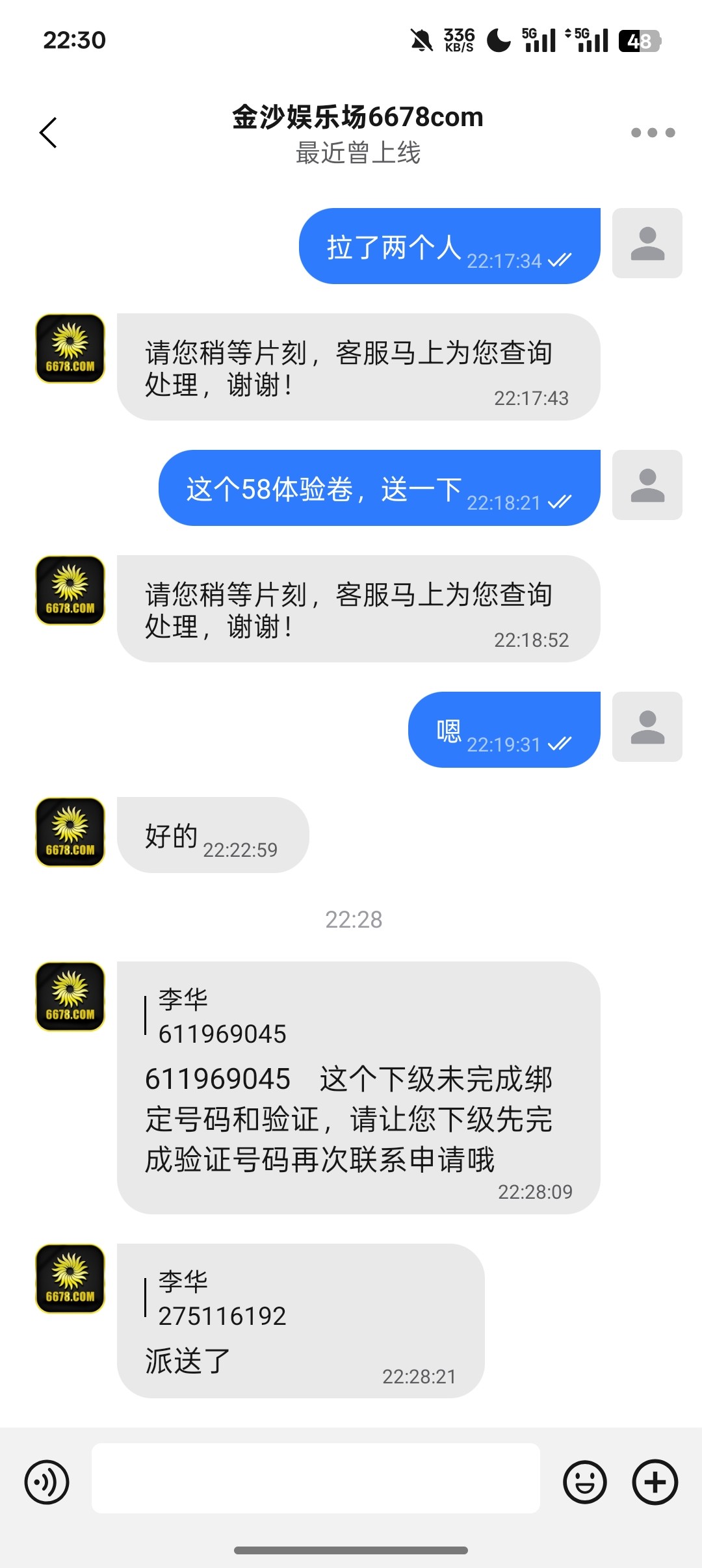 送了,给你机会你不中用啊,兄弟,你都给我发两个号了,你这都不绑一下手机号