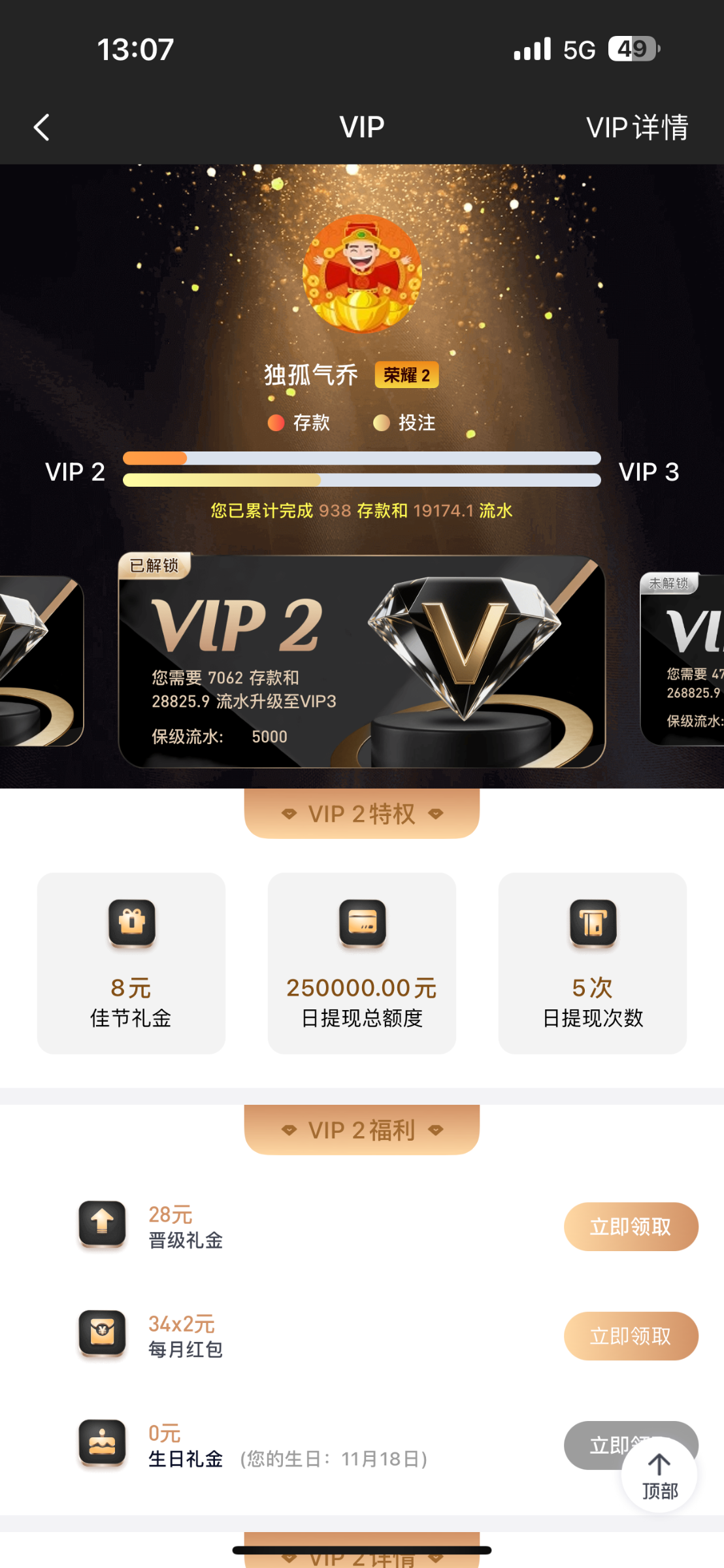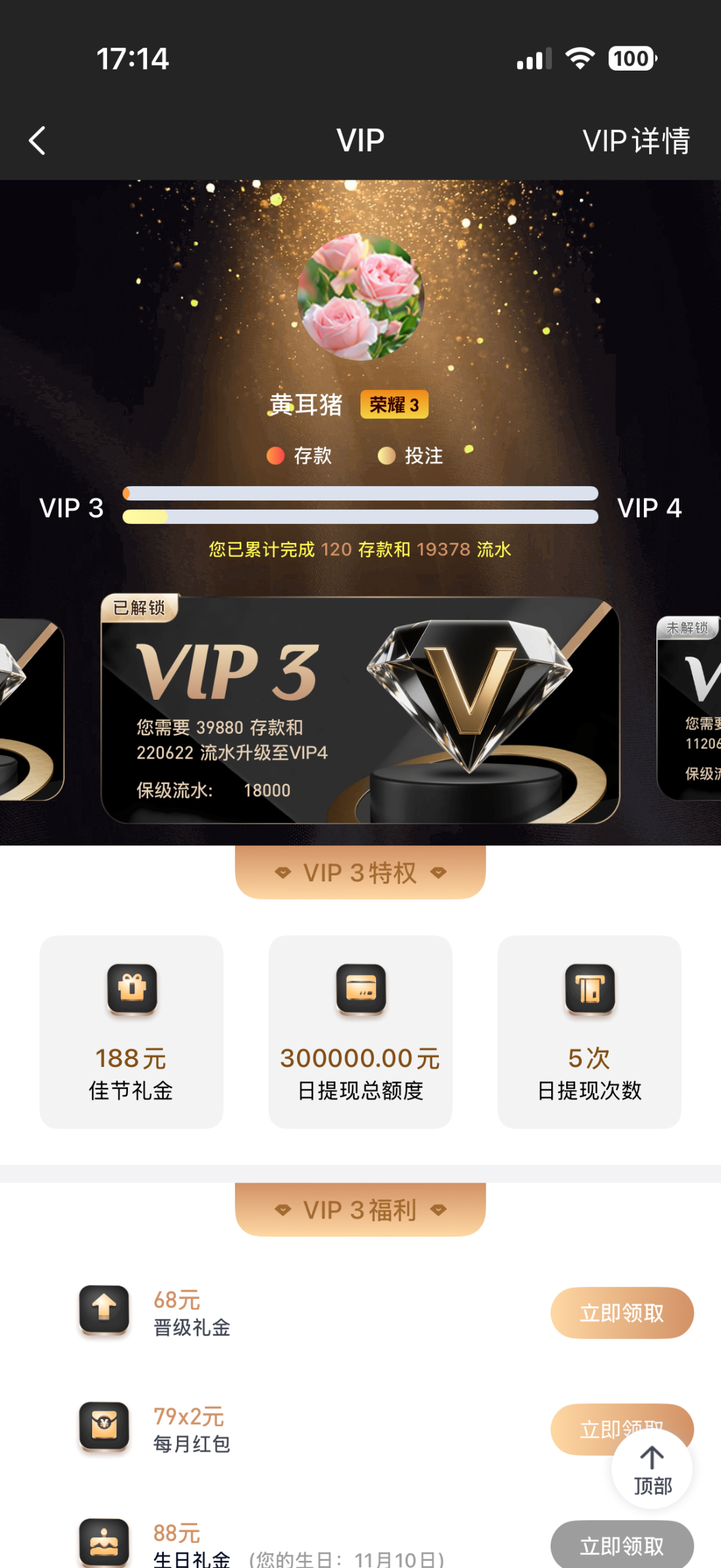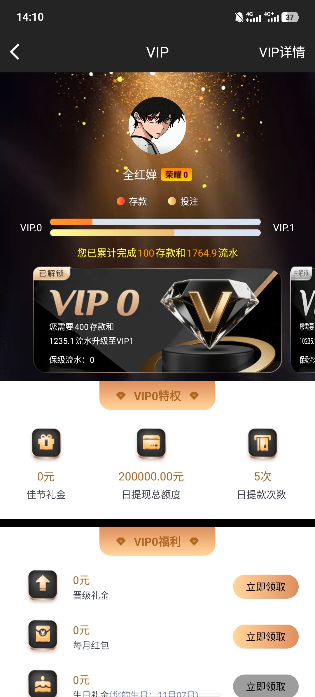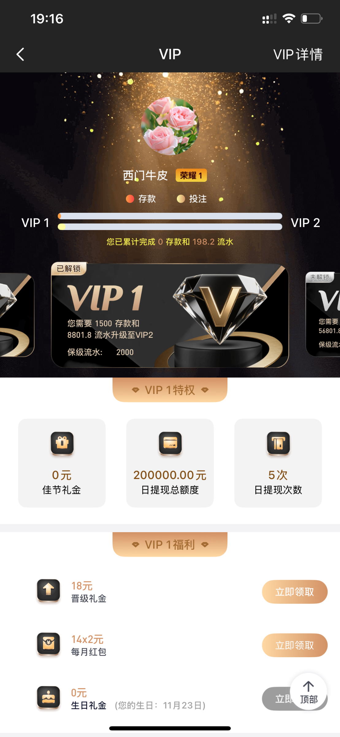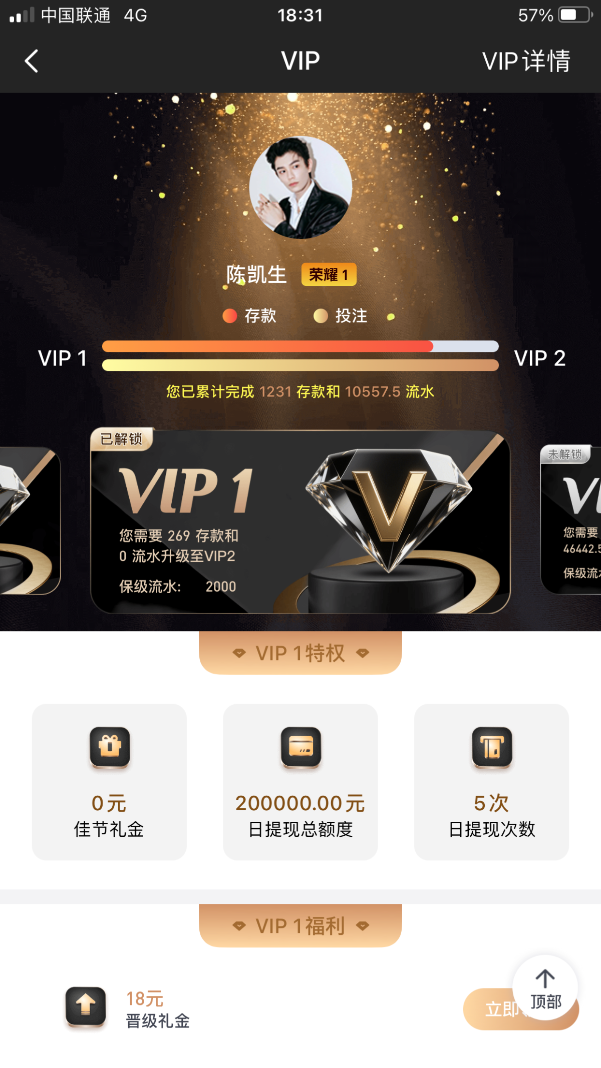 jh752812打到vip2了搞点彩金打赏下感谢