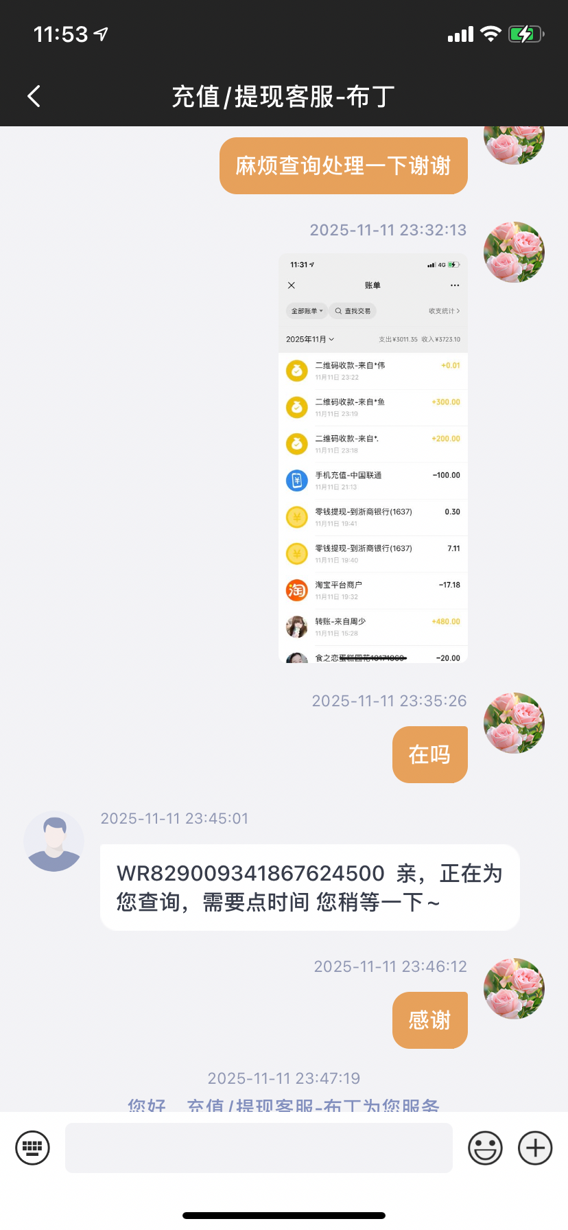 蛋总上了100打到一千,提现只到账500客服刚开始不理人,后来又是一直查询中,走你的麻麻烦解决一下,账号wz218582