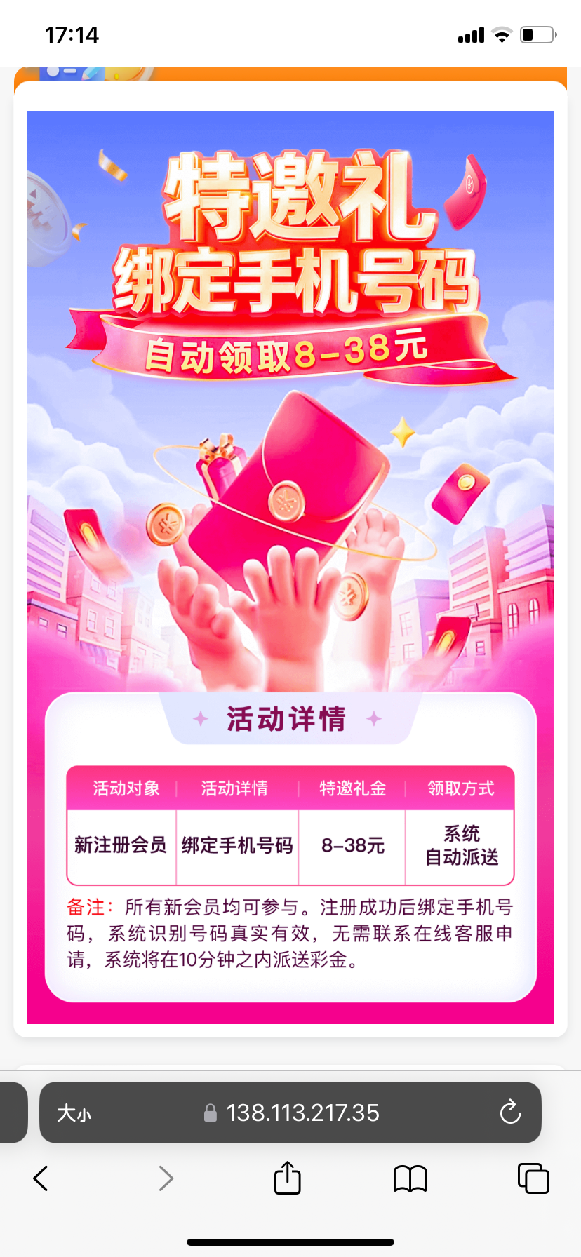 新用户注册绑定手机号,是特邀的话十分钟自动派送,8-28/100提