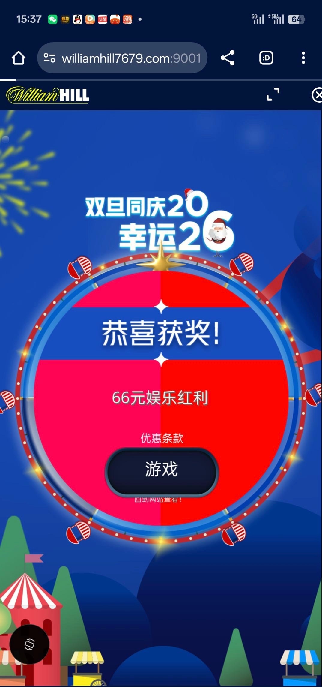 我是收到邮箱的,上线里面有个幸运2026活动点进去旋转就能抽奖,我抽到了66有号的可以去看看https://www.williamhill7679.com:9001/zh-cn/login