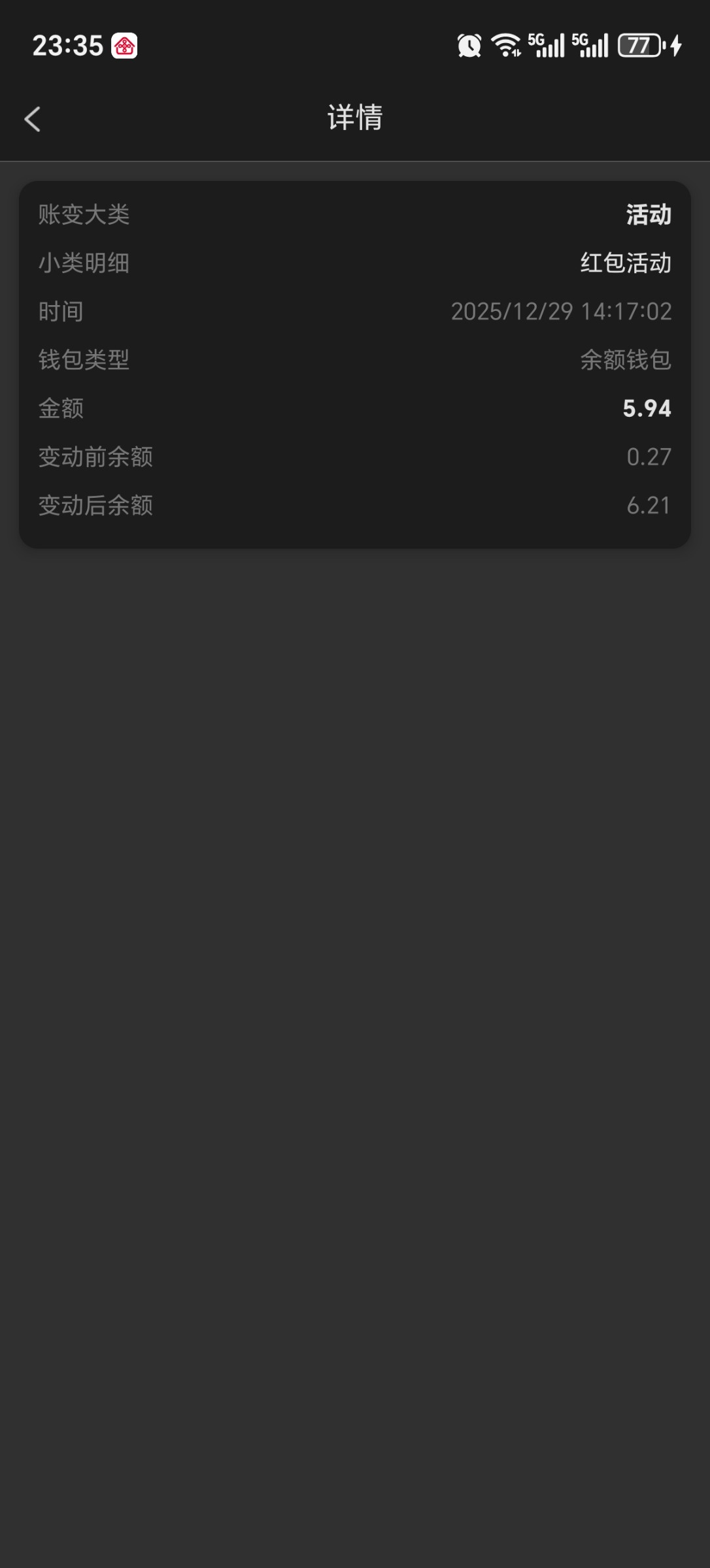 我在3339永利玩了一年,这台格局太大了,今年充了二百多万,元旦给我发了5.94元红包。我真是受宠若惊。这台子格局这么大兄弟们知道么?我真怕他送破产了