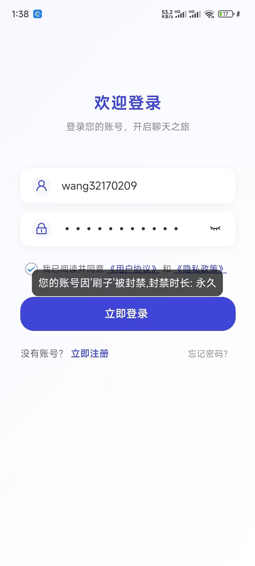 今天收到手机短信,说是EB开新台,老用户送688,捧着免费白菜的心态回复了,然后让我下载一个球聊的软件加专员,加了专员后让我在hqcx.com上面注册新号,说是免费送688,VIP0送88,打到VIP1送100,VIP2送200,VIP3送300,总共送688,中间一直给我推送充多少送多少的活动,其中迫切的问我什么时候开始充值,我说先试玩下,送了88,要求5倍水,我按照要求打了450的水,88打到219,申请提款,然后就是一直审核,等了半个小时,先是球聊的软件说我是刷子,把我账户永久封禁,接下来就是环球诚信的网站也登录不上了,账户异常,劝大家这几天收到此类短信千万不可信,充值了就是送狗了