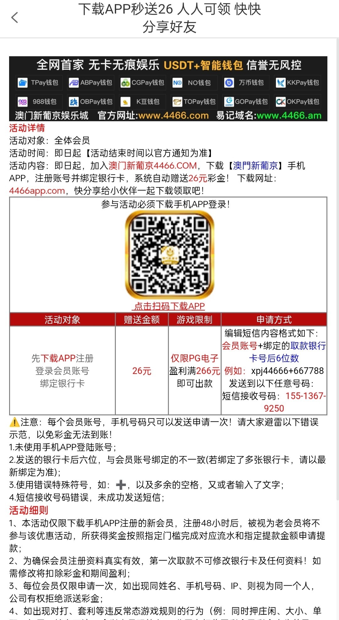 新用户注册完善信息发短信送26彩金,具体自测4466.com
