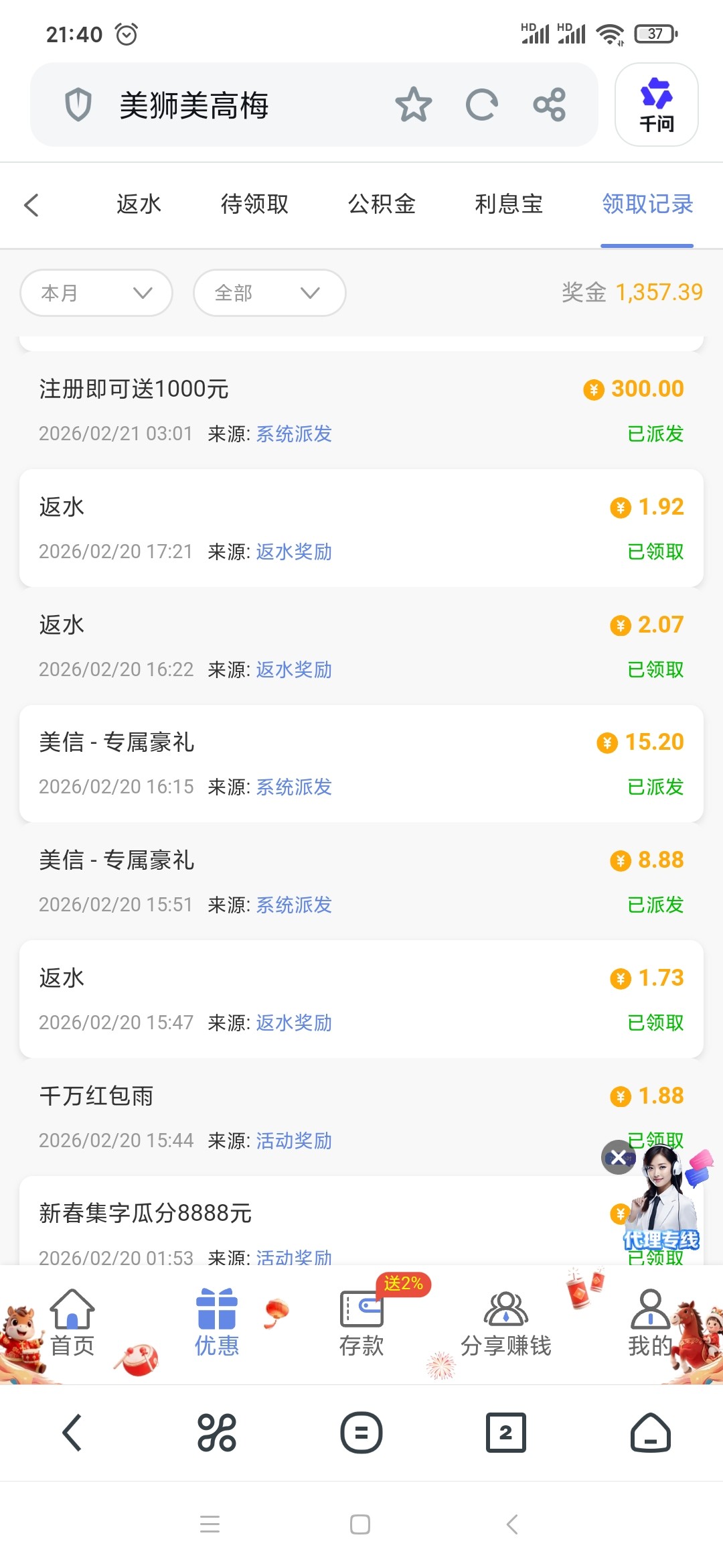 刚刚狗庄财务给我打电话来,说进去有彩金回访,这个台子之前充值了100,他喵的毛都没提出来,今天看来狗庄良心发现了,给我送来春节彩金回馈,官网美高梅https://www.45.lc 打不开就换这个56893.cc 防止拦截,还有个备用网址02.TT,18彩金看我撸死狗庄财务搞个500出来他奶奶的