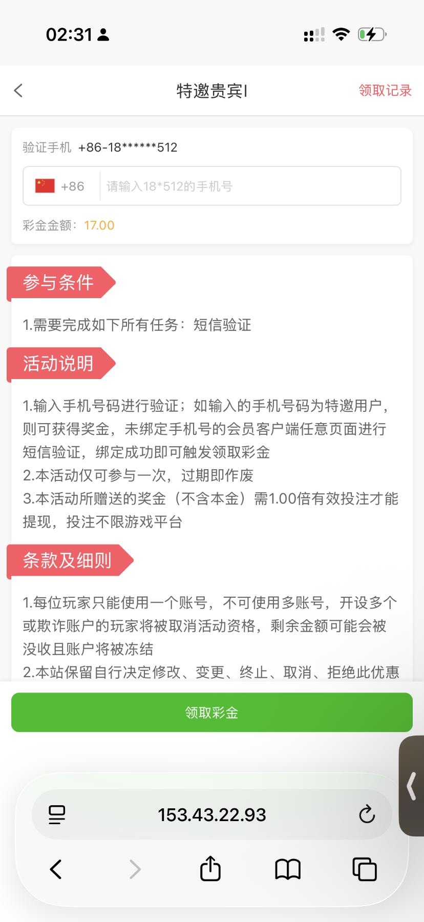 注册验证手机送17 存100可以像0505一样领取礼物大家可以试试
