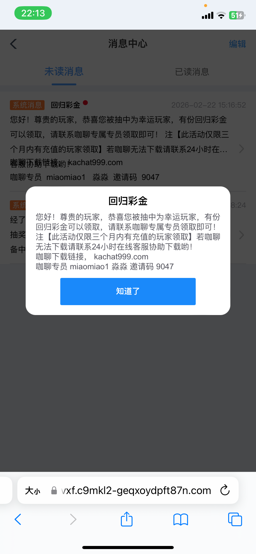碰瓷站内信彩金